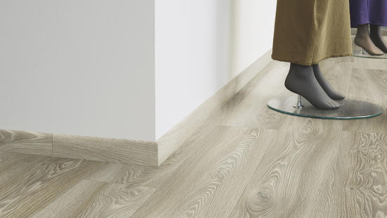 Dekoracyjne listwy przypodłogowe do paneli i płytek winylowych (LVT) wykonane z PCV z filmem dekoracyjnym i zabezpieczeniem PUR. Wodoodporne, o dużej wytrzymałości na ścieranie. Dostępne są listwy o wysokości 60 mm i długości 2,02 m, w kolorach pasujących do kolekcji paneli i płytek winylowych. Dekoracyjne listwy przypodłogowe są kompatybilne ze wszystkimi podłogami LVT Tarkett (Glue-Down, Click i Loose-Lay).